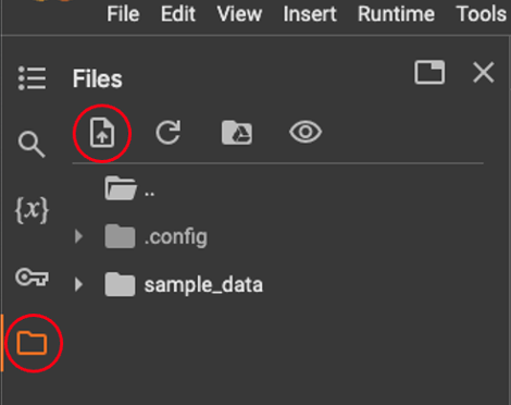 Upload ‘fastq.gz’ files. On left hand side of screen, click on the folder icon (Files) and then click on ‘Upload to session storage’ icon. NOTE: This data will not be saved and any outputs need to be saved if outputs are not directed to Google Drive.