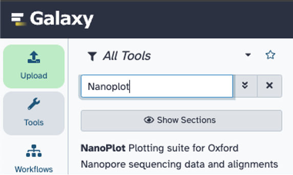 For the following steps, you will use the Nanoplot software on Galaxy for quality control of reads.