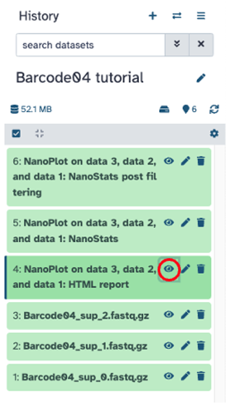 View ‘HTML report’ file on screen by clicking the eye icon; if needed, download figures from ‘HTML report’ and summary statistics from ‘NanoStats’. Summary statistics and plots can be found below.